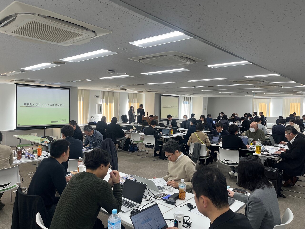 会議の冒頭には、外部講師をお招きして「無自覚ハラスメント防止セミナー」を行いました。ハラスメントに対する意識をアップデートし、役員一人ひとりが自身の行動を見つめ直す機会となりました。